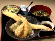 【牧之原・すけろく】タチウオとイチジクの天ぷら 迫力満点「天丼」で地元の恵みを堪能