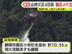 藤枝の山林火災 発生から4日目となるも鎮圧の見通し立たず 焼損面積は約10.5ヘクタールに