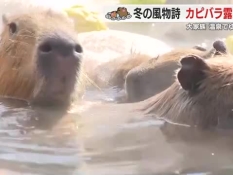カピバラ露天風呂 冬の到来を告げる風物詩 ポカポカお風呂でまどろむ姿 静岡・伊豆シャボテン動物公園