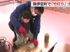 電動ドリルで思い思いのデザインを 南伊豆町で「竹灯り」づくり 2月に河津桜の夜桜とともに展示