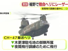 New 陸自ヘリの夜間飛行訓練中…約10分間にわたりレーザー照射