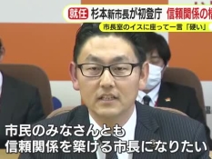 New 市長室のイスに座って一言「硬い」 その真意は? 前職の田久保氏や元職の小野氏を破った伊東・杉本新市長が初登庁 半年にわたる混乱を念頭に信頼関係構築を強調