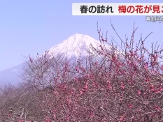 New 春の訪れ 見頃を迎えた紅白の梅の花と富士山との“共演”で人気スポットに