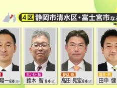 New 【衆院選】一騎打ちから一転して野党乱立の静岡4区 再び選挙区から国政目指す自民党・深沢候補 連勝だけを見据える国民・田中候補 割って入る参政党・高田候補とれいわ・鈴木候補