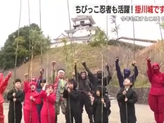 New 徳川と今川の激戦の地・掛川城で天守閣のすす払い ちびっこ忍者も大活躍