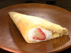 森町の中心地にある、和洋菓子の老舗。スポンジとクリームが包まれたクレープが人気。