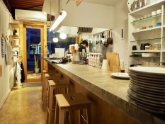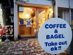 駒形通りにあるカフェ。ベーグルサンドが店の人気商品です。