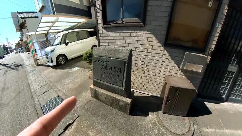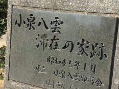 いまは石碑が立つのみですが、「怪談」などで知られる小泉八雲が避暑地として滞在した家の跡です。